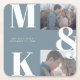 Modern Minimalist Photo Wedding Bold Monogram Square Paper Coaster