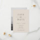 This wedding save the date card features a minimalist and modern style. The front has a clean Ivory Beige background with classic Warm Grey typography, combining bold serif fonts with a touch of script for a refined look. The back showcases a black-and-white photo of the couple with text overlay, creating a romantic and timeless design.