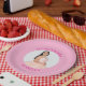 Create your own personalised pink border round photo paper plates for your her 15th birthday.