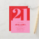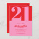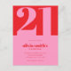Modern minimalist 21st birthday invitation postcard featuring simple design with elegant chic typography in pink and red colour.