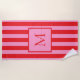 Create your own personalised beach towel featuring your custom monogram initial on a retro striped background pink and red colour
