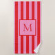 Modern Minimalist Pink Red Striped Monogram Beach Towel