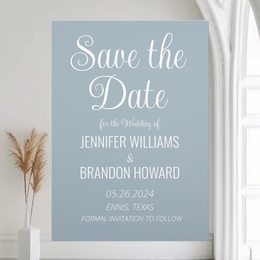 Minimalist, dusty blue, elegant, modern, qr code Wedding Save the Date. Please personalise it with your details and add your own qr code.