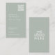 Elegant, modern business card with your Logo and QR code prominently displayed on muted pastel colours alongside your contact information, including social media handle in a stylish script and timeless typography design. This is the dusty green version.