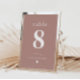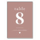 A simple Quinceañera table number sign, featuring a dusky pink background with bold typography pairings. All of the text and colours, including the background and little heart, are editable in this design, so that you can customise it to suit your theme. Perfect for adding signage to your decor on your daughter's special day!
