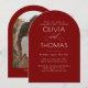 Set the perfect tone for your celebration with this romantic burgundy red engagement party photo invitation. The sleek arched design, deep red background, and flowing calligraphy create an elegant, intimate feel, while the option to feature a photo on the back adds a personal and modern touch of luxury.