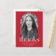 Modern graduation thank you postcard featuring the graduate's photo framed by a red arch-shaped frame. "Thanks" is displayed in white modern italicized lettering. Personalize the front of the trendy graduation thank you postcard by adding the graduate's name, school name, and graduation year. The postcard reverses to display your return address and custom message.