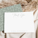 Elegant thank you note card featuring "Thank You" in a sage green handwritten script. Personalise the front of the botanical thank you note cards by adding your names or custom text. The custom stationery reverses to display a beautiful foliage pattern. The sage green thank you note cards are perfect to use for weddings, baby showers, graduations, birthdays, and more!