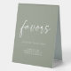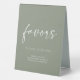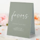 Modern Minimalist Sage Green Wedding Favours Table Tent Sign. The word 'favours' is not editable. Can be used for weddings, bridal showers, baby showers, etc.