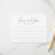 Modern minimalist enclosure card design features soft black lettering on a crisp white background. Customise the text and personalise to match your event colours or theme. This Advice & Wishes enclosure card asks bridal shower, baby shower, or wedding guests to share their best words of advice and well wishes for the bride, mum to be, couple, or parents. Place a stack at your event or include as an enclosure card with shower invitations.