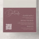 Invite guests to celebrate the mother to be with these modern and minimal all in one baby shower invitations in a beautiful colour palette of soft off white and rich dusty plum purple with brown undertones for an earthy desert boho aesthetic.. Simple design features "baby shower" in casual handwritten script, with your event details beneath. Detachable bottom portion features three custom fields for additional details; shown with a diaper raffle, book request, and registry QR code. Simply send and seal!