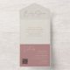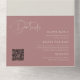Invite guests to celebrate the mother to be with these modern and minimal all in one baby shower invitations in a beautiful colour palette of soft off white and rich dusty rose pink for an earthy desert boho aesthetic.. Simple design features "baby shower" in casual handwritten script, with your event details beneath. Detachable bottom portion features three custom fields for additional details; shown with a diaper raffle, book request, and registry QR code. Simply send and seal!