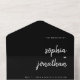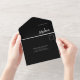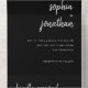These elegant, minimalist all-in-one wedding invitations feature white modern script typography and clean, sans serif text for a simple and stylish black design you will love. Detachable RSVP response card is attached.