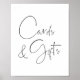 Direct your bridal shower, baby shower, or wedding guests to leave their cards and gifts with this simple minimal sign, available as a digital download or professionally printed. Design features "cards & gifts" in soft black handwritten script lettering on a crisp white background.