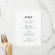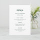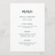 This elegant, minimalist wedding menu card features modern script typography and clean, sans serif text for a simple and stylish emerald green and white design you will love.