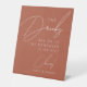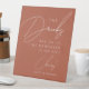 Modern Minimalist Script Funny Wedding Drinks Pedestal Sign in Terracotta colour