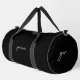 A simple script duffel bag in black with personalised name and monogram/initials.