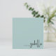 This chic note card features your name in a handwritten script calligraphy "a note from" on a dusty blue green background. The typography is stylishly placed in the lower right corner.
