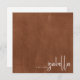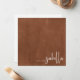 This chic note card features your name in a handwritten script calligraphy "a note from" on a distressed cocoa background. The typography is stylishly placed in the lower right corner. The back of the note card is white.