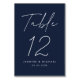 Simple, modern wedding table number cards featuring "Table" displayed in a handwritten white script with a navy background (or a colour of your choosing). To order the navy wedding table cards: add your name, wedding date, and table number. Each number needs to be added to your cart individually. After you have finished adding each table number to your cart, simply checkout and wait for your beautiful table number cards to arrive!