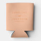 Modern Minimalist Script Peach Custom Wedding Can Cooler