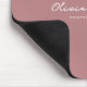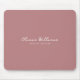 Modern Minimalist Mouse Pad with Personalised Name in Script. It can be customised with job title, custom text, etc. Muted light pink-red background with white text.