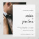 These elegant, minimalist black and white wedding save the date cards feature modern script typography and clean, sans serif text, with your favourite personal photo on the back.