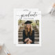 "Celebrate your academic achievement with this modern and minimalist graduation announcement. The front features a large portrait photo framed by elegant hand-lettered brush script, while the back offers a stylish four-photo collage to showcase your favorite memories. This clean black and white design is perfect for high school or college graduates looking for a sophisticated way to invite friends and family to their graduation party or reception."