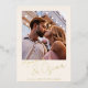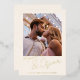 This save the date card features a large photo paired with elegant gold script names for a warm, romantic look. The handwritten lettering adds a personal touch, while the soft neutral background keeps the layout feeling clean and modern. Its refined style works beautifully for city weddings, destination plans, fall celebrations, or any couple who loves a simple yet elevated design. The spacious photo area lets the moment shine, with the gold foil accents bringing a subtle, celebratory glow.