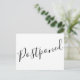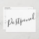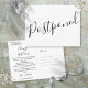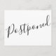 This modern minimalist black and white script postponed change of date card can be personalised with your postponement information. The reverse has additional details, including your return address wedding website and space for your recipient's address. Perfect for weddings, bridal showers, engagement parties, anniversary celebrations, graduations, birthday get-togethers, baby showers, baptisms and other special events throughout the year! Designed by Thisisnotme©