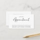 Modern minimalist professional appointment reminder card with "Appointment" in a stylish script and your name and contact information on the back in simple typography.