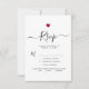 Elegant yet minimal wedding rsvp design featuring sophisticated script calligraphy paired with a minimalist red heart.