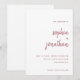 These elegant, minimalist wedding invitations feature terra rosa (rose pink) modern script typography and clean, sans serif text on a white background for a simple and stylish design you will love.