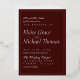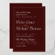 Announce your special day with this luxurious Real Foil Wedding Invitation! This design features a Minimalist Script Calligraphy against a bold Vineyard Red background, perfect for a chic and modern event. The raised foil adds a sophisticated, high-end feel, catching the light beautifully. This style is ideal for a classic themed wedding.