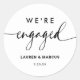 Modern Minimalist Script We're Engaged Classic Round Sticker