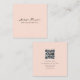 Modern Minimalist Signature Script QR Code Pink Square Business Card