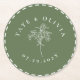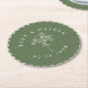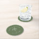Modern and minimal, this green and white paper coaster features white customisable curved text with a simple centre botanical stem and a "stitched" edge