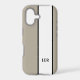 Fashionable personalised custom modern colour block minimalist design has three vertical monogrammed initials. Design features two bold trendy taupe tan colour blocks on both sides of a single white stripe with a black edge. In the middle of the white vertical stripe there is an area to add initials. Colours and fonts are easily changed for a truly one of a kind design! Contact me at beachpausedesigns@gmail.com with questions regarding this or any of our designs.