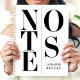 This sleek and modern design features bold black typography spelling "NOTES" in a contemporary split layout. The minimalist black-and-white colour scheme makes it versatile and timeless, while the custom name adds a personal touch. Ideal for professionals, students, or anyone who values clean, elegant aesthetics. Perfect for staying organised or jotting down ideas with a stylish flair. A sophisticated design for lovers of modern simplicity.