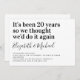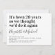 Invite friends and family to join you for your vow renewal celebrations with this funny wedding invitation. The text reads "It's been 20 years so we thought we'd do it again" You can change the number of years as well as personalise with your names and details of the event.