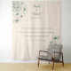 Featuring a soft cream background and delicate sage green floral outlines, this minimalist backdrop sets the perfect tone for your ceremony, reception, or photo booth. The script names and date above, paired with the beautifully typeset quote below, offer a poetic and personal touch — ideal for modern garden weddings, vintage-inspired events, or literary-themed celebrations.