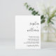 Modern minimalist wedding invitation postcard features the bride and groom's name in a modern script and chic and modern text. The look is sophisticated and modern and minimal.