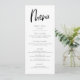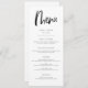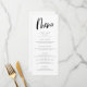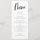 Modern minimalist wedding dinner menu card featuring boho script font.