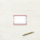These modern Post-It Notes feature a simple design with 4 white horizontal stripes and a white rectangle on a customisable dusty pink background.
