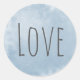 Soft blue and grey background, dotted just a bit with white glitter creates a soft and minimalist palate for the world LOVE. it is written in a modern and Boho sparse font. Perfect to seal a Boho wedding invitation, bridal shower invite or even a 50th wedding anniversary invitation for a couple of Baby Boomer hippies.