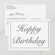 Happy Birthday greeting postcard. Stylish modern minimal white and black design.