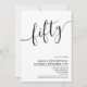 Modern Elegant Script White 50th Birthday Invitation. Minimalist 50th birthday invitation template design featuring calligraphy hand lettered script font.