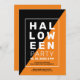 Simple modern minimalistic geometric Halloween party invitation. Orange white and black.