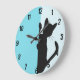 Modern Minimalistic Peeking Kitty Cat - Blue Large Clock