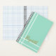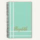 This custom name spiral notebook has a mint green cover and a customisable name in gold to personalise. Available in multiple sizes, the interior pages can be customised with your choice of page design for journalling or note taking.